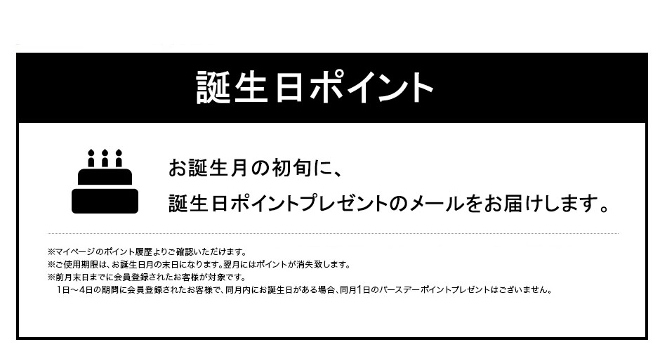 ①会員のみお買い物をするとポイントをお貯めいただくことができます。 商品代金の5%がポイントにて還元され、「1ポイント=1円」として次回以降のお買い物の際にお使い頂けます。(小数点以下は切り捨て)
