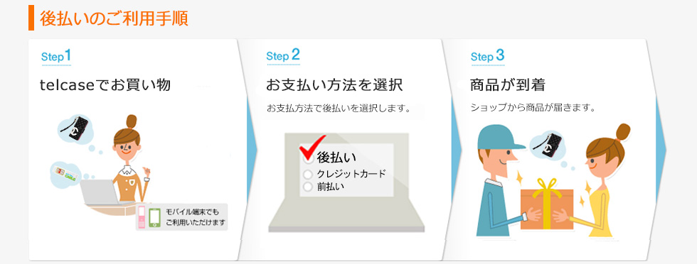 ※弊社与信審査の結果によっては「telcases後払い」サービスのご利用をお断りすることがございます。また、与信審査結果とその内容について弊店に開示する場合がございます。